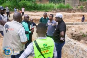 La commission s’est ensuite rendue sur la RN1, notamment à Katoka et Ndesha, où elle a constaté un affaissement de la chaussée et des retards au marché Salongo dus à la présence de câbles SNEL et de conduites de la REGIDESO.